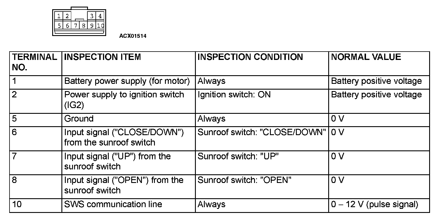 Check At ECU Terminal - Sunroof Motor Assembly: