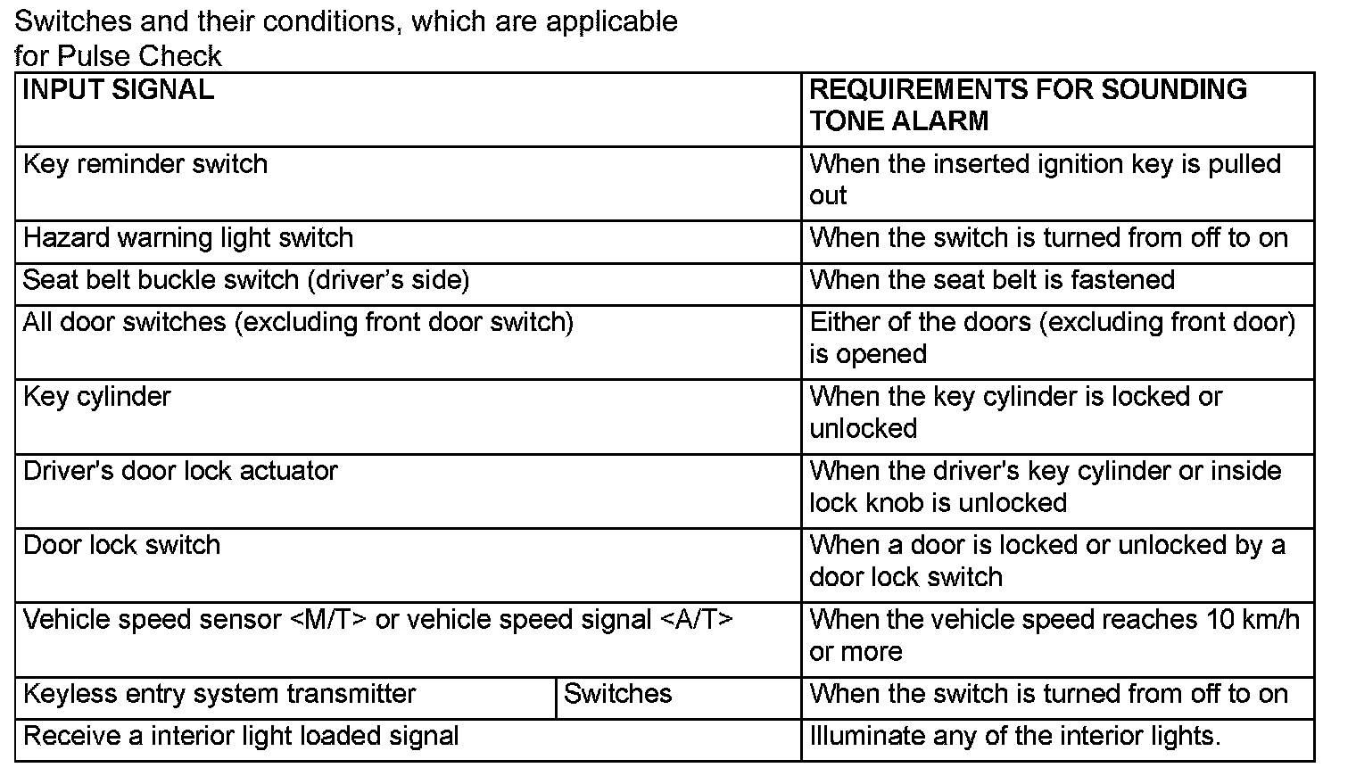 PULSE CHECK1. The input signals (signals other than SWS communication line signals), which are compatible with the SWS monitor by using the scan tool or voltmeter, can be confirmed by the Pulse Check.