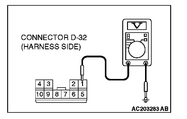 1. Disconnect sunroof motor assembly connector D-32 and measure the voltage available at the wiring harness side of the connector.