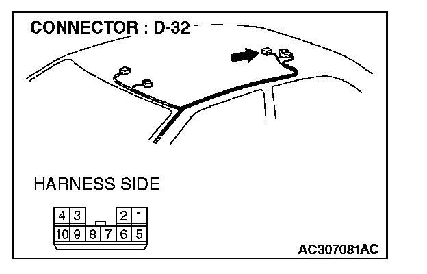 STEP 1. Check the sunroof motor assembly connector D-32 for loose, corroded or damaged terminals, or terminals pushed back in the connector.