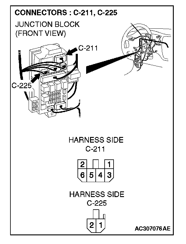 NOTE: Also check intermediate connectors C-18, C-126, junction block connectors C-211 and C-225 for loose, corroded, or damaged terminals, or terminals pushed back in the connector. If intermediate connectors C-18, C-126, junction block connectors C-211 or C-225 are damaged, repair or replace the damaged component(s) as described in Harness Connector Inspection.