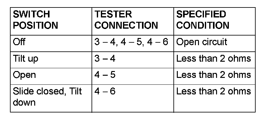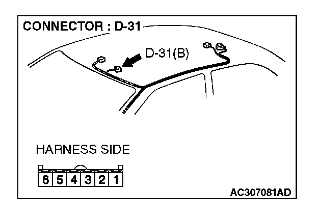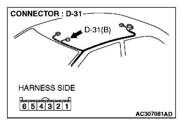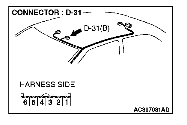 1. Disconnect sunroof switch connector D-31 and measure the resistance available at the wiring component side of the connector.