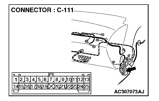 STEP 10. Check front-ECU connector A-10X for loose, corroded or damaged terminals, or terminals pushed back in the connector.