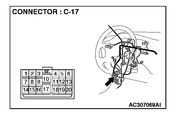 NOTE: Also check intermediate connector C-17 for loose, corroded, or damaged terminals, or terminals pushed back in the connector. If intermediate connector C-17 is damaged, repair or replace the damaged component(s) as described in Harness Connector Inspection.