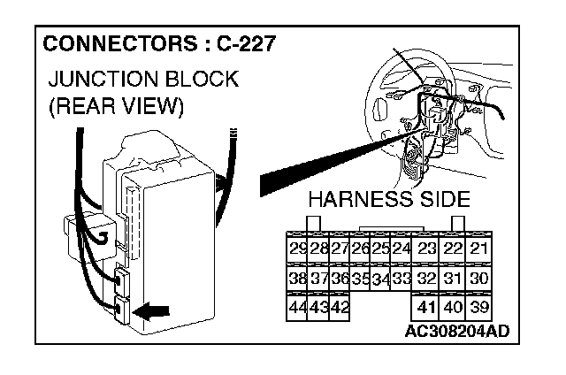 STEP 6. Check ETACS-ECU connector C-227 for loose, corroded or damaged terminals, or terminals pushed back in the connector.