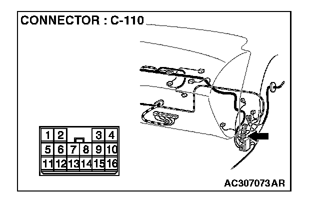 NOTE: Also check intermediate connector C-110 for loose, corroded, or damaged terminals, or terminals pushed back in the connector. If intermediate connector C-110 is damaged, Repair or replace the damaged component(s) as described in Harness Connector Inspection.