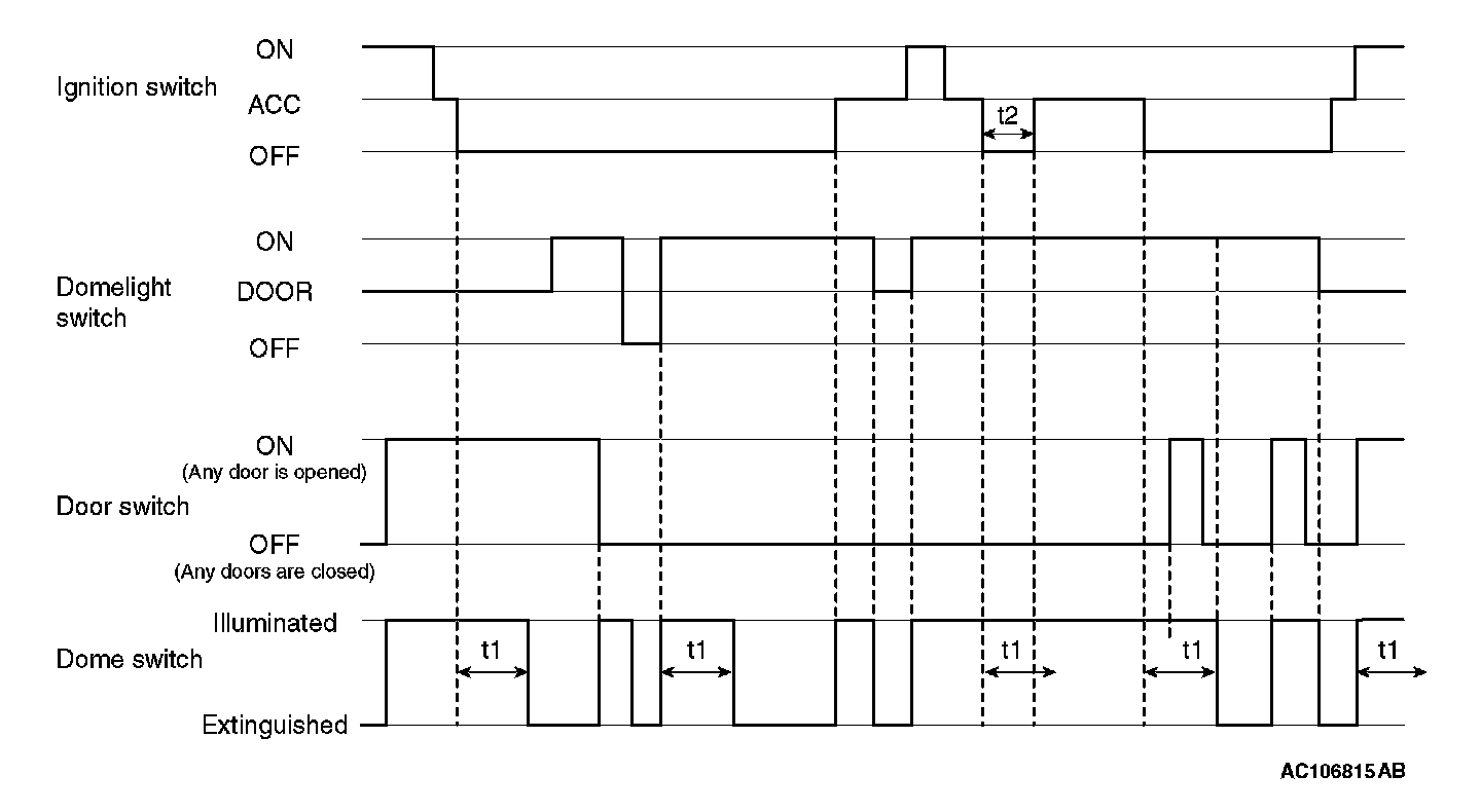 When the dome light switch is at the door position, the ETACS-ECU controls the lighting of the dome light as follows:
