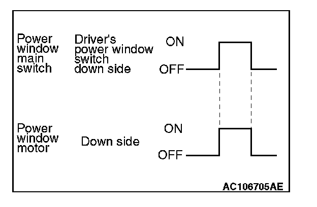 When the driver's power window switch on the power window main switch is pushed down, the system energizes its respective power window motor, and then driver's window glass lowers.