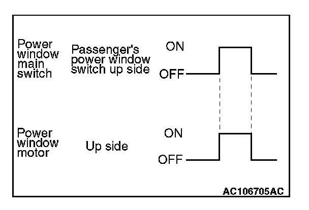 When the passenger's power window switch on the power window main switch is pulled up, the system energizes its respective power window motor, and then passenger's window glass rises.