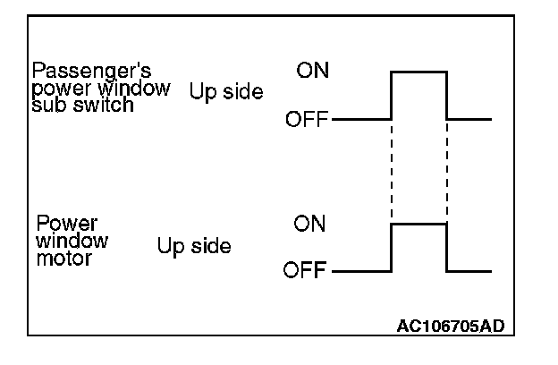 When the power window sub switch is pulled up, the system energizes its respective power window motor, and then passenger's window glass rises.