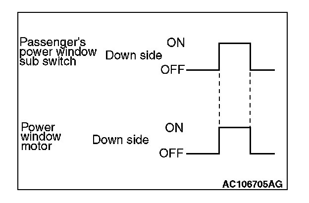 When the power window sub switch is pushed down, the system energizes its respective power window motor, and then passenger's window glass lowers.