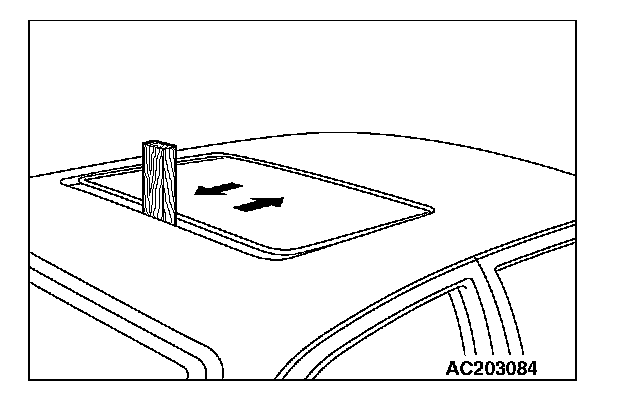 1. Close the roof lid glass by applying an approximately 10mm (0.39 inch) thickness wood chip placed in a right angle with the roof lid glass.
