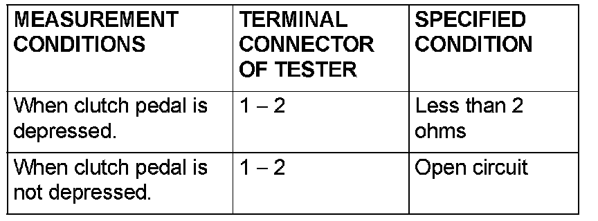 - voltage should measure 0.5 volts or less. (When clutch pedal is depressed.)