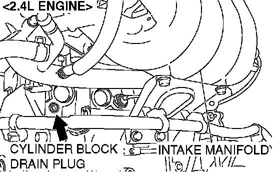 4. Drain the water in the water jacket by unplugging the drain plug of the cylinder block.