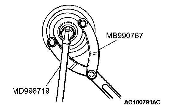 Use special tools MD998719 and MB990767 to remove the crankshaft pulley.