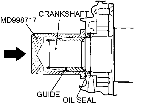 1. Place the special tool MD998717 on the crankshaft front end and apply engine oil to the its outer diameter.