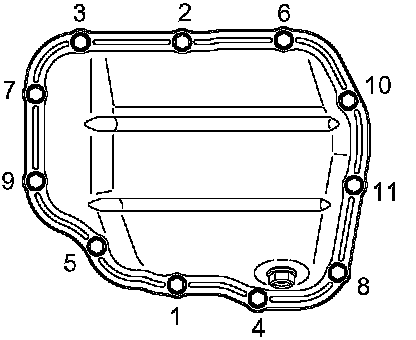 3. Tighten the lower oil pan mounting bolts in the sequence shown in the illustration.