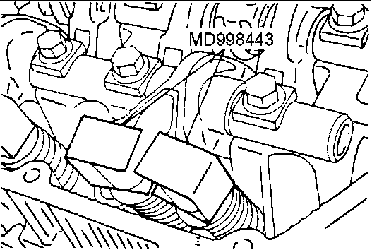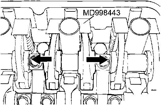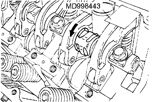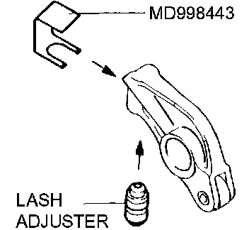 Set special tool MD998443 to prevent the lash adjuster coming free and falling to the floor.