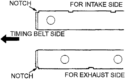Install the rocker arm shafts, place the end with notched side toward the timing belt side as shown.