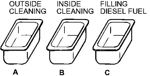 CAUTION: Do not use container C for cleaning. If cleaning is performed in container C, foreign matter could enter the pressure chamber when the chamber is filled with diesel fuel.