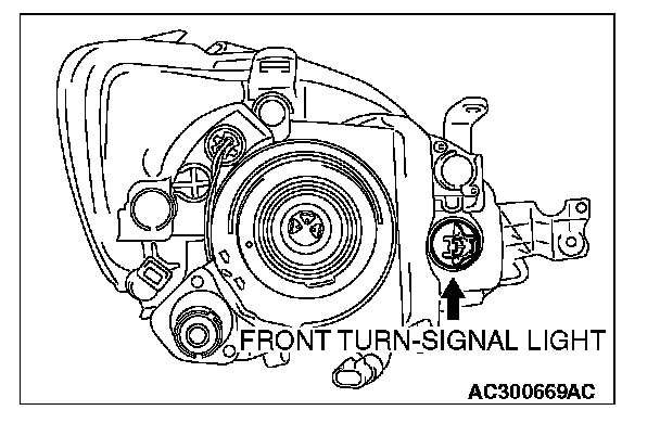 Front Turn-Signal Light bulbCAUTION: Do not touch the bulb surface bare-handed or with dirty gloves. If dirt is attached on surface of the bulb, immediately use alcohol or thinner to remove dirt, and install the bulb after well dried.