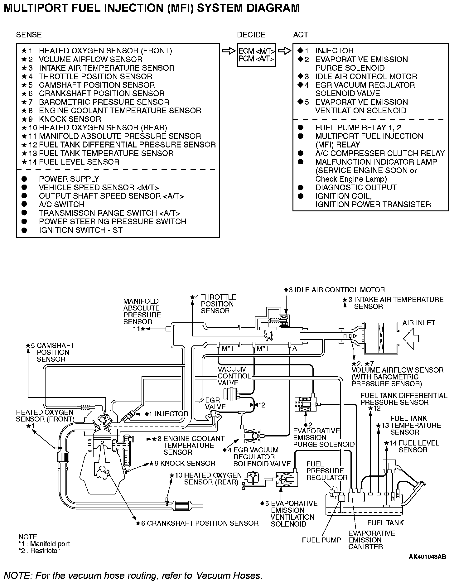 The Multiport Fuel Injection System consists of sensors, actuators and the engine control module (ECM)