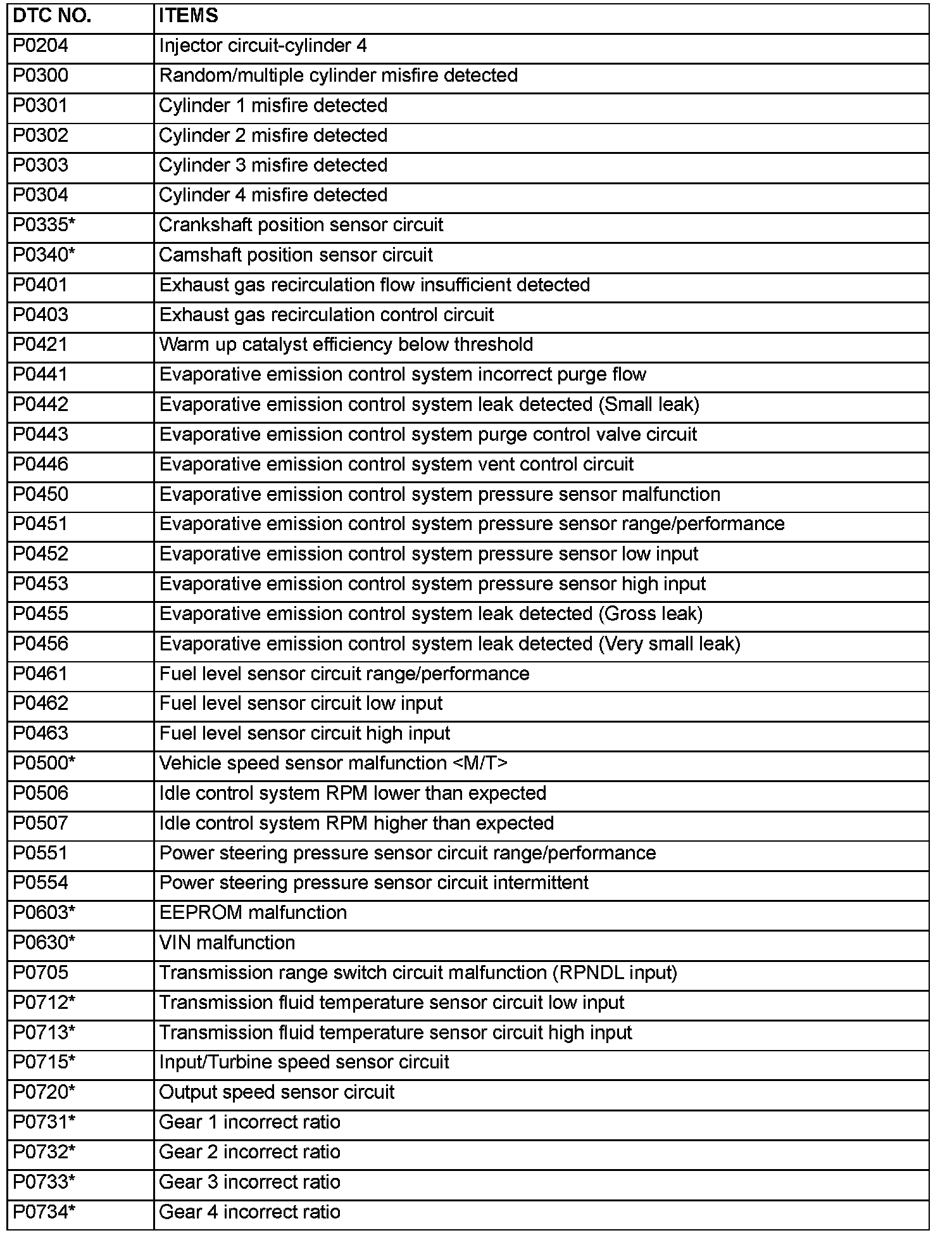 P0204 - P0734: