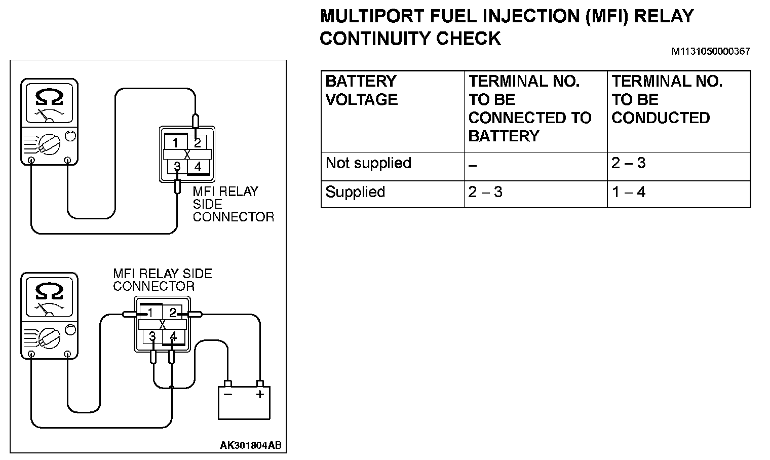 Multiport Fuel Injection (MFI) Relay Continuity Check: