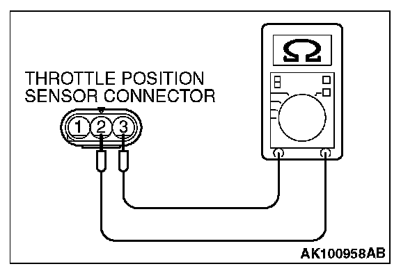 2. Measure resistance between the throttle position sensor side connector terminal No. 2 and terminal No. 3.