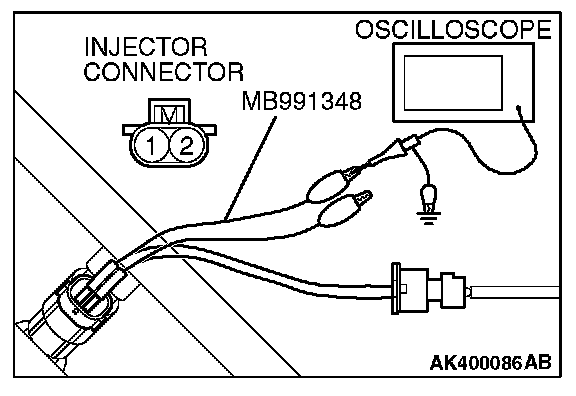 2. Connect the oscilloscope probe to injector connector terminal No. 2.