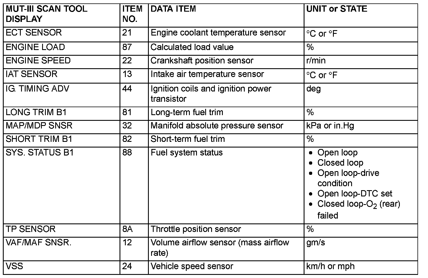 NOTE: As for Diagnostic trouble code P1603, "freeze frame" data is not memorized.