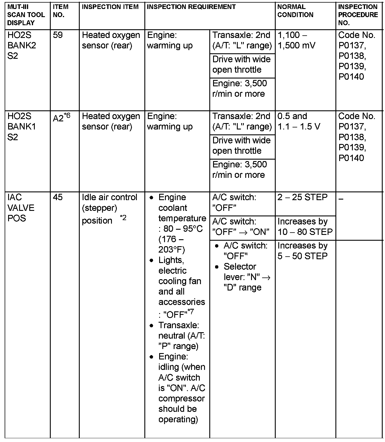 NOTE: *2: In a new vehicle [driven approximately 500 km (311 mile) or less], the step of the stepper motor is sometimes 30 steps greater than the standard value.