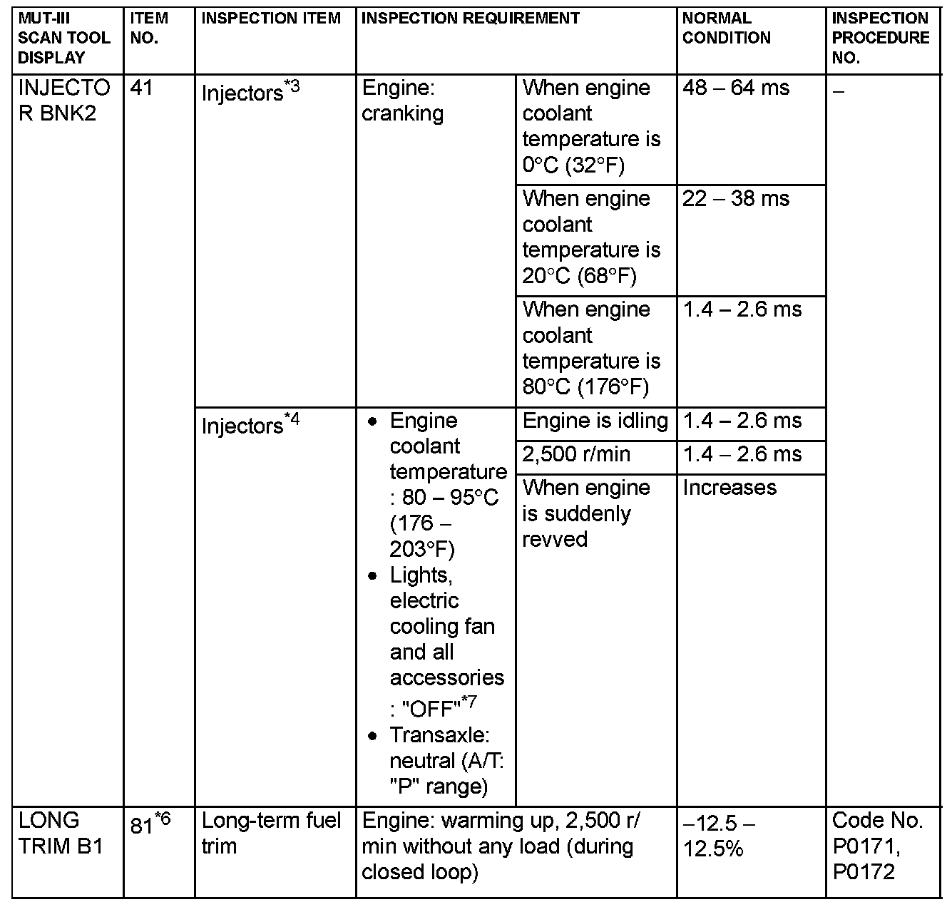 NOTE: *4: In a new vehicle [driven approximately 500 km (311 mile) or less], the injector drive time is sometimes 10% longer than the standard time.