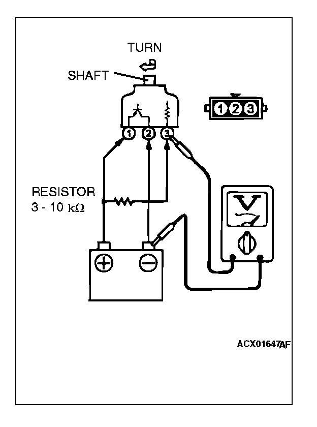 2. Turn the shaft of the vehicle speed sensor and check that there is voltage between terminals 2- 3. (1 turn = 4 pulses)