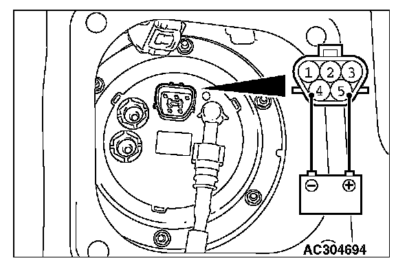 5. When the fuel pump drive connector is attached directly to the battery, check if the sound of the fuel pump operation can be heard.