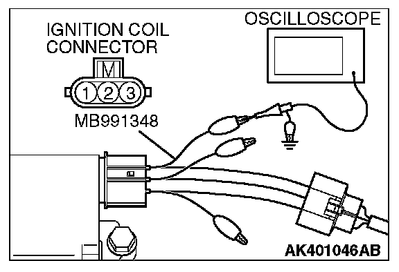 2. Connect the oscilloscope probe to ignition coil connector terminal No. 3.