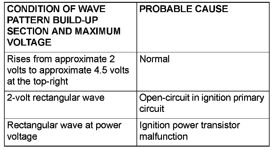 Point: Condition of wave pattern build-up section and maximum voltage (Refer to abnormal wave pattern examples 1 and 2.