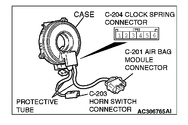 3. Check to see that there is a charge (continuity) between the C-204 clock spring connector terminal and C-203 horn switch.