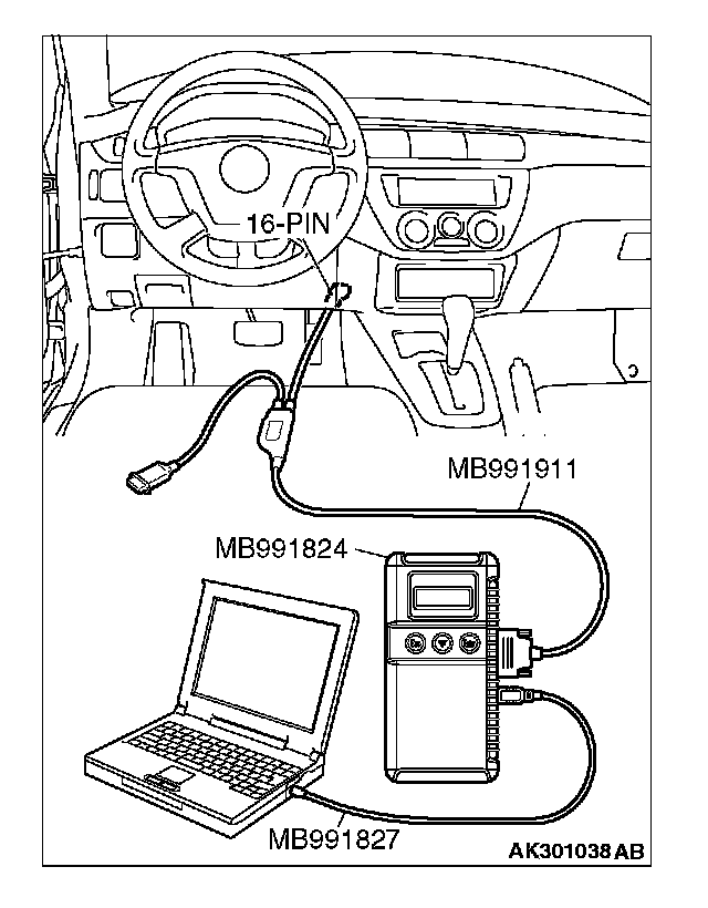 1. Connect scan tool MB991958 to the data link connector (16-pin).