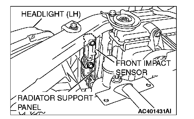 3. Check the front impact sensor wiring harness for binding, check the connector for damage, and check the terminals for deformation.