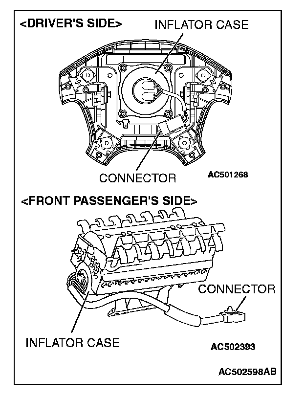 3. Check the air bag inflator case for dents, cracks or deformities.