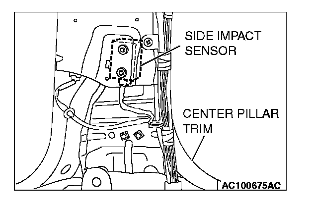 NOTE: The illustration at left shows the side impact sensor (LH). The position of the side impact sensor (RH) is symmetrical to this.