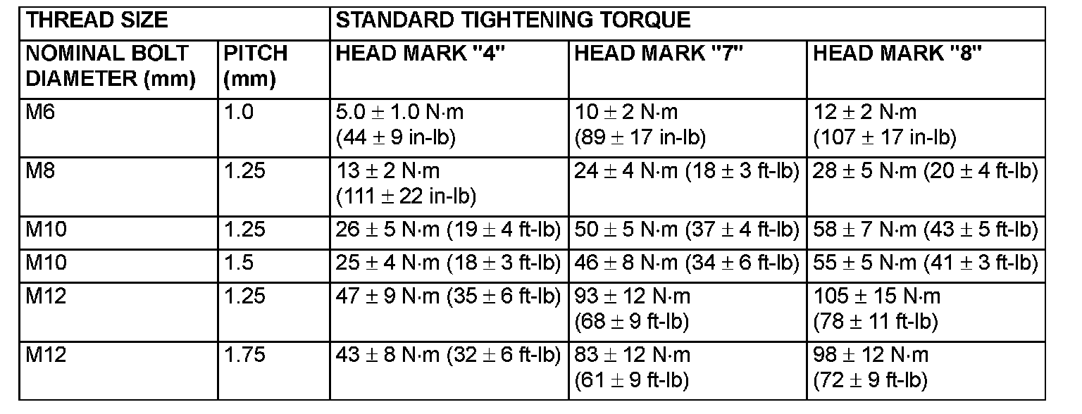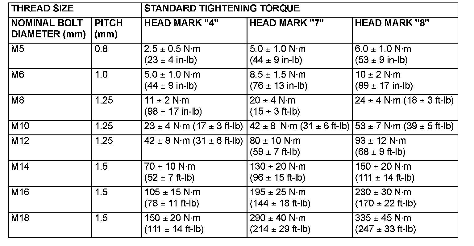 STANDARD BOLT AND NUT TIGHTENING TORQUE