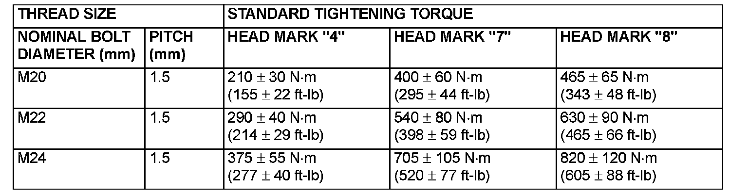 Each torque value in the table is a standard value for tightening under the following conditions.