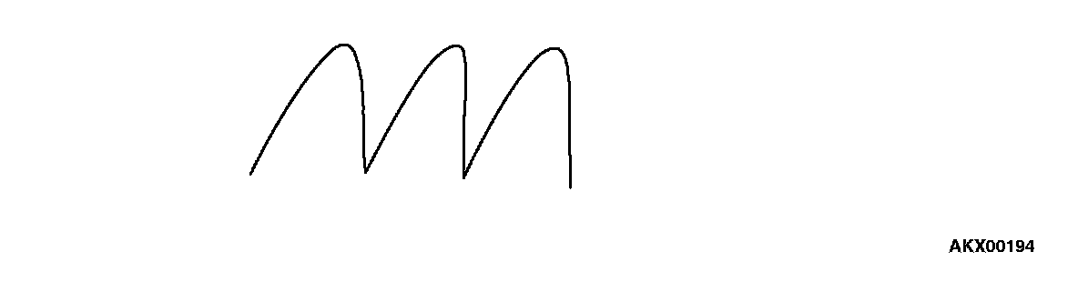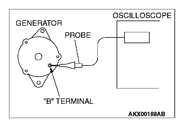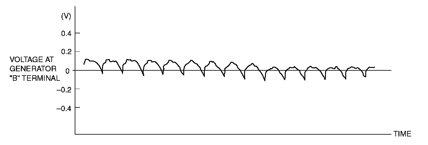 If the ripple height is abnormally high (approximately 2 V or more during idling), the wires between the generator "B" terminal and the battery have broken due to fuse blowing, etc. The generator is usually operating properly. .