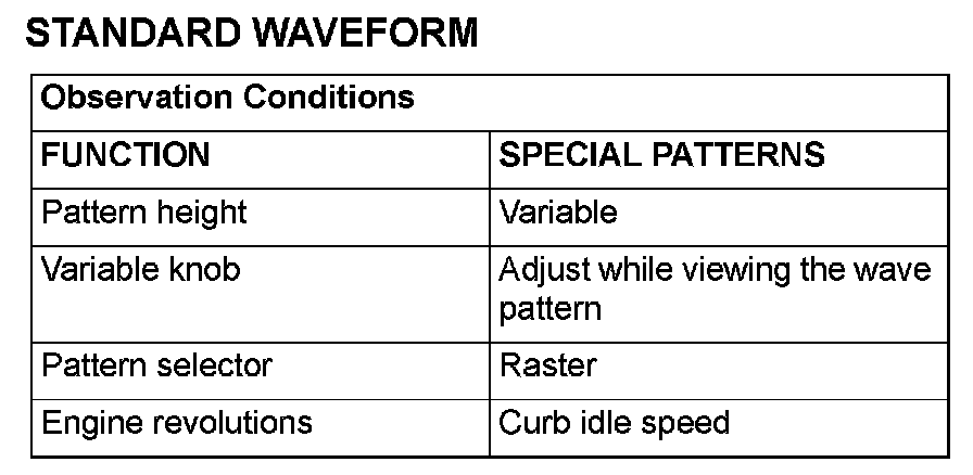 NOTE: The size of the waveform patterns can differ greatly, depending on the adjustment of the variable knob on the oscilloscope.