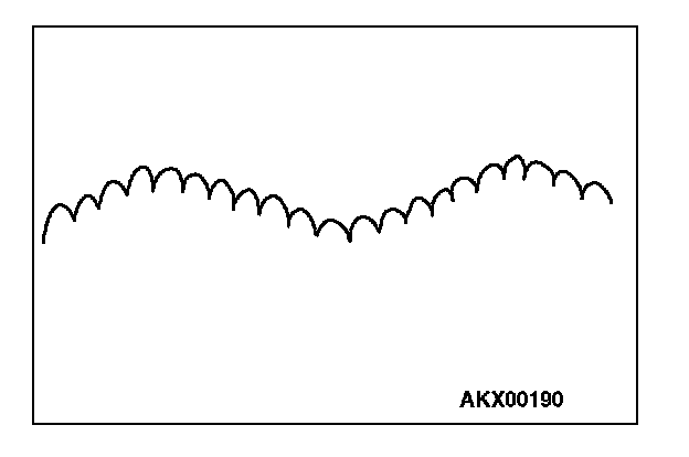 NOTE: The voltage waveform of the generator "B" terminal can undulate as shown at left. This waveform is produced when the regulator operates according to fluctuations in the generator load (current), and is normal for the generator.