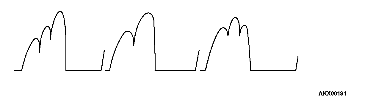 NOTE: Identification of abnormal waveforms is easier when there is a large output current (regulator is not operating). (Waveforms can be observed when the headlights are illuminated.)