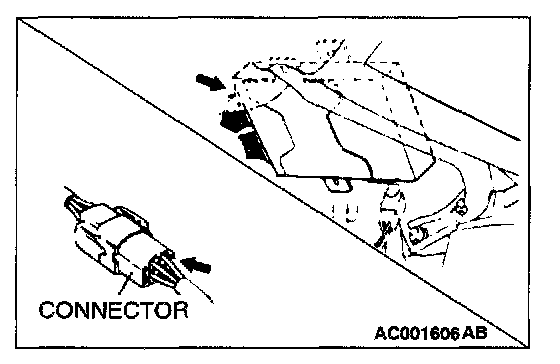 Be sure to use special tool, MD998459. Never insert a test probe from the harness side, as this will reduce the waterproof performance and result in corrosion.