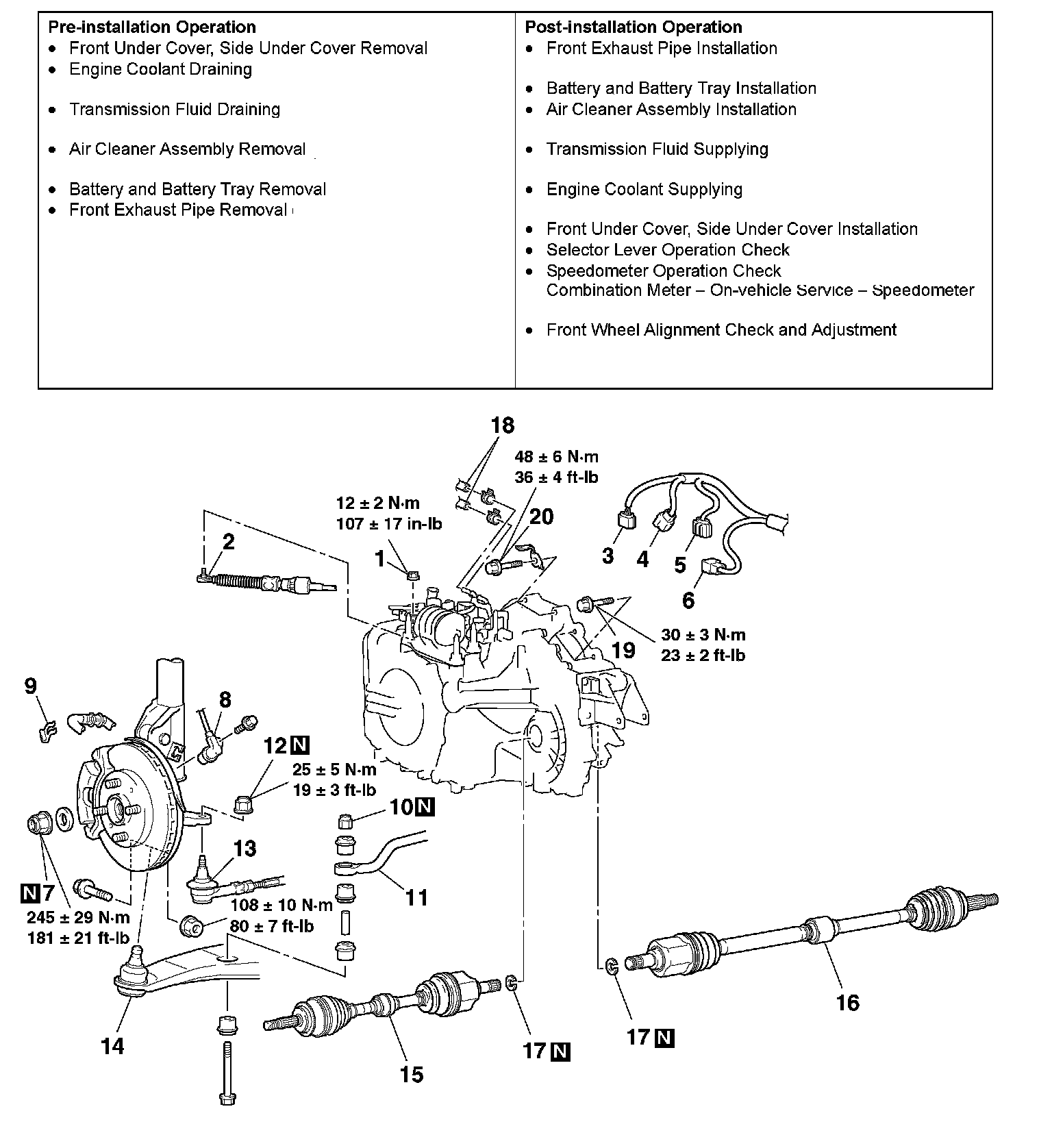 >>E<< DRIVE SHAFT NUT/TRANSAXLE CONTROL CABLE INSTALLATION